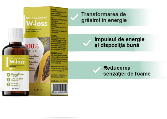 De obicei, vă durează între 7 și 14 zile pentru a obține cetoza. Doar 20 de picături de W-Loss va reduce acest timp la 40-50 de minute, timp în care va porni procesul de transformare a grăsimilor în energie și reducerea depunerilor de grăsimi. Metoda de administrare: de 1-2 ori pe zi puneți câte 20 de picături în 100 ml de apă.